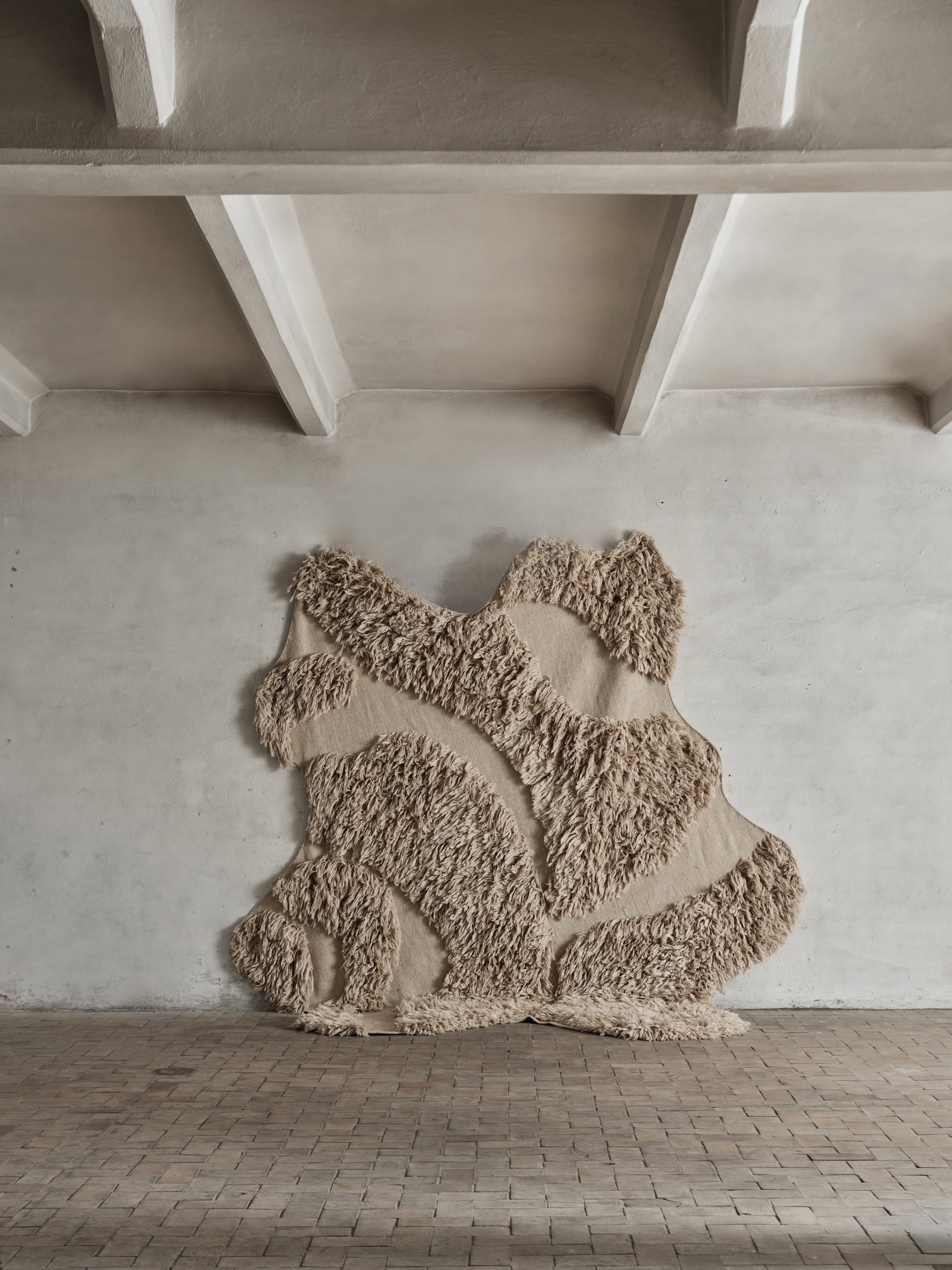 More sculpture than textile, this rug embraces imperfection and organic shape. Its free-form outline and layered pile lend a tactile richness. In a soft crème palette, it becomes a serene focal point that brings balance to curated spaces.